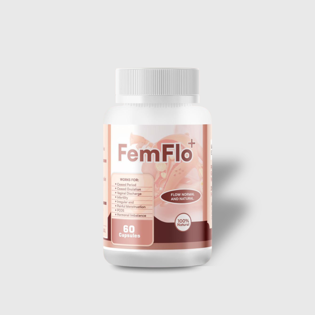 FemFlo+ will cure… and resolve any menstrual irregularity, painful menstruation, vaginal dryness, PCOS, vaginal discharge, smelling period, increase your chances of conceiving, eliminate constant unhealthy mood swings, painful period and bring hot flashes to a sudden end